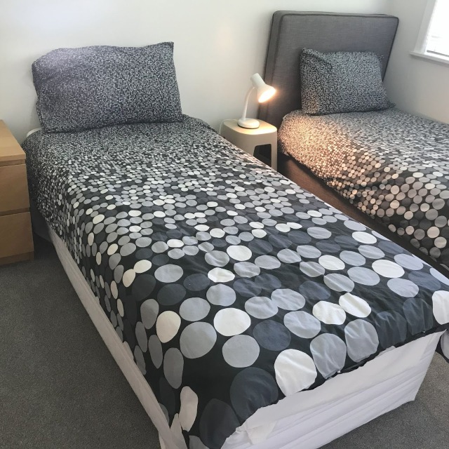 Twin bedroom with wardrobe. Kids themed bedding available.